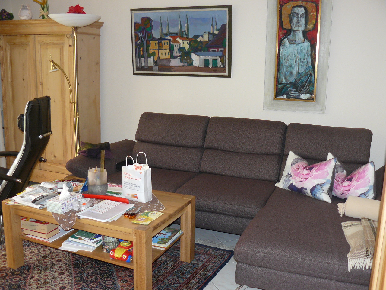 Sie bewohnen insgesamt 5 Zimmer, 2 Badezimmer (1x mit Wanne und 1x mit Dusche), 1 Gäste-WC im EG und 1 Dusche im UG. Des weiteren 2 Küchen, 1 Hobbyraum, 1 Hauswirtschaftsraum mit Heizung und 3 Lagerräume. Die Einbauschränke und die Stauräume in den Dachschrägen bieten zusätzlich viel Platz.